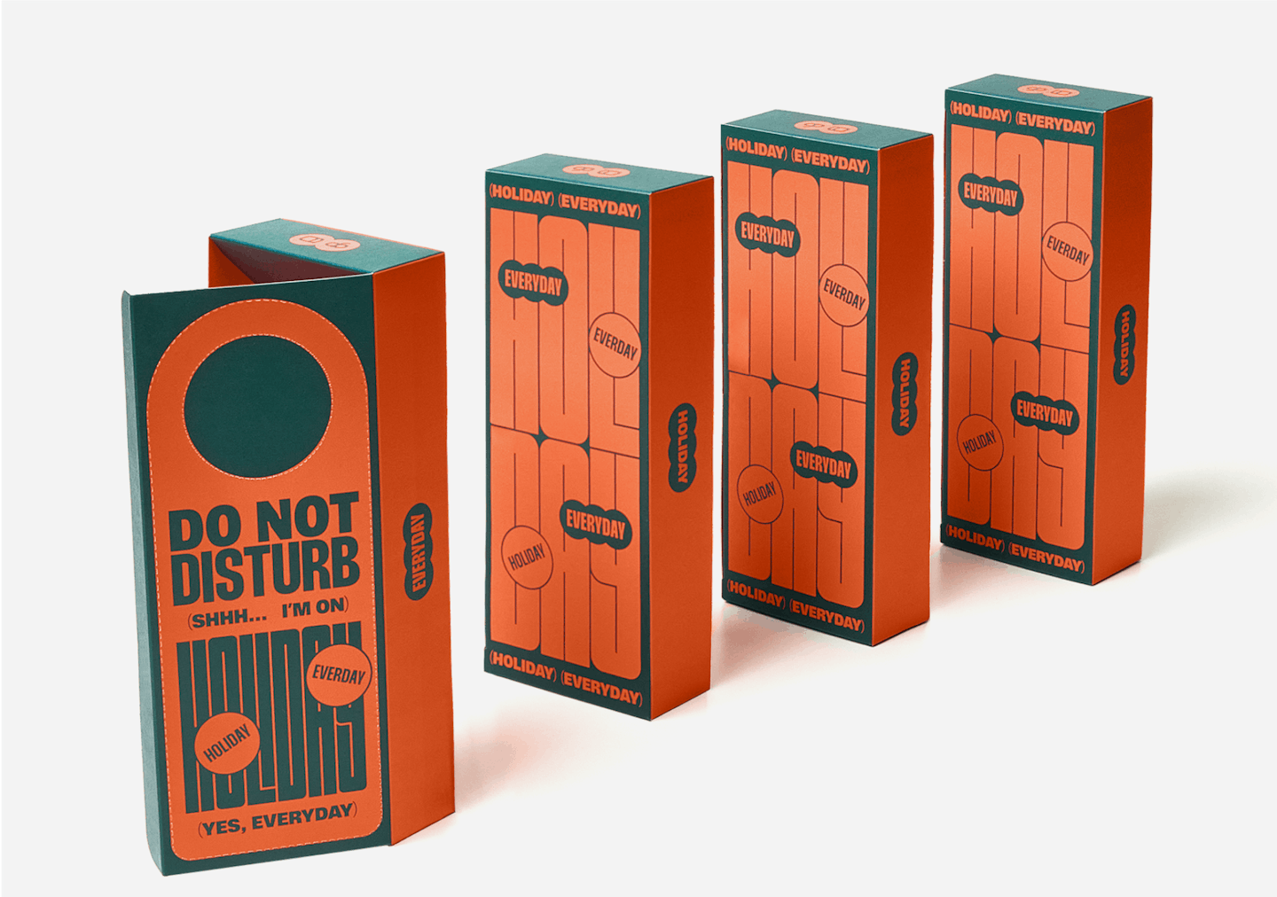 For our second packaging design, we have a smaller, more compact box made for a single pair of socks. Our graphic designer, Rashah, lead the concept with the hotel "Do Not Disturb" door handle sign. This played perfectly into our aspiration of an interactive packaging that people can actually use and keep while fitting in with our holiday theme.