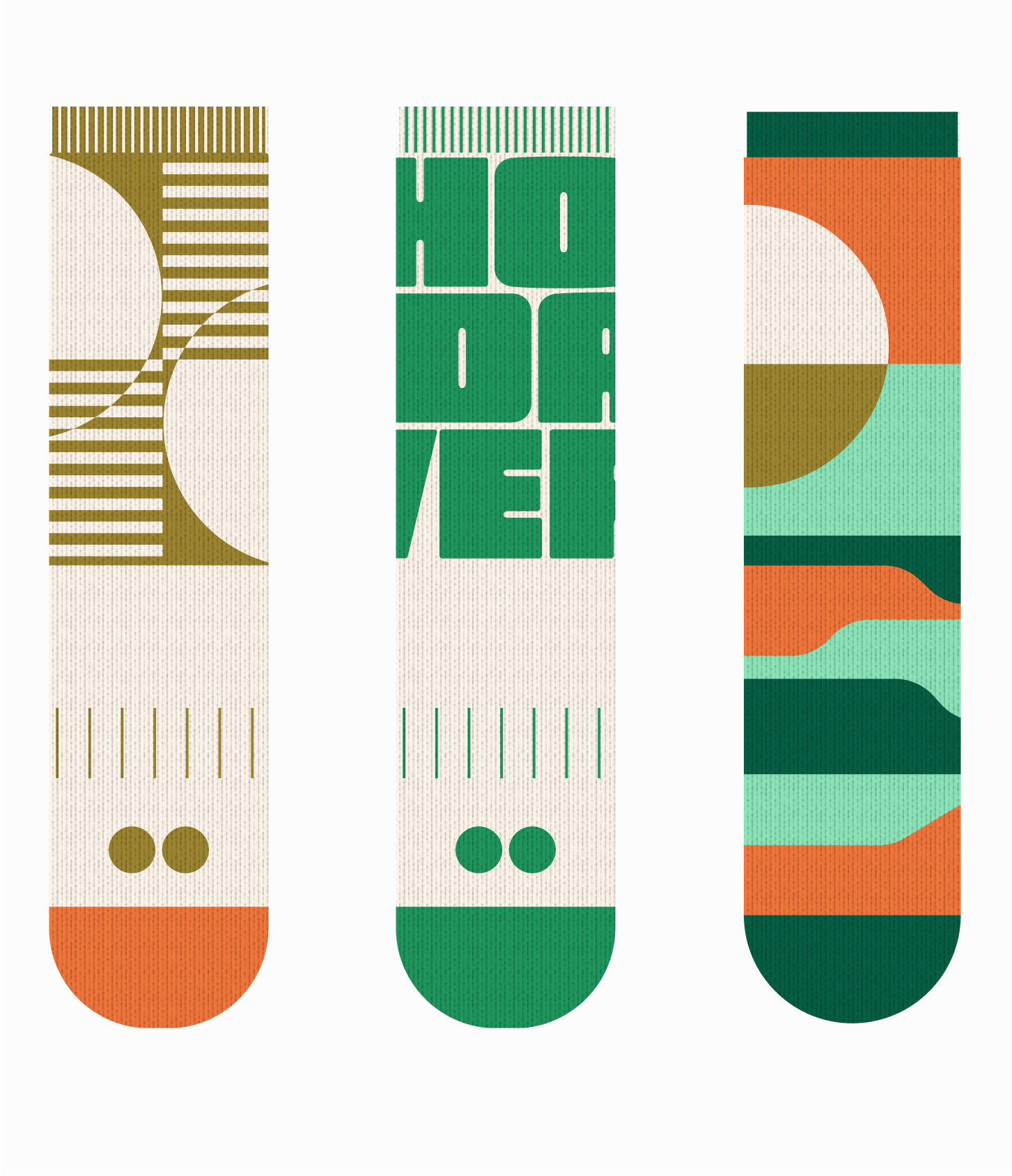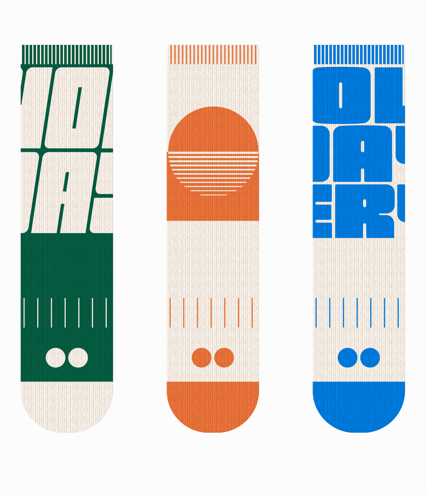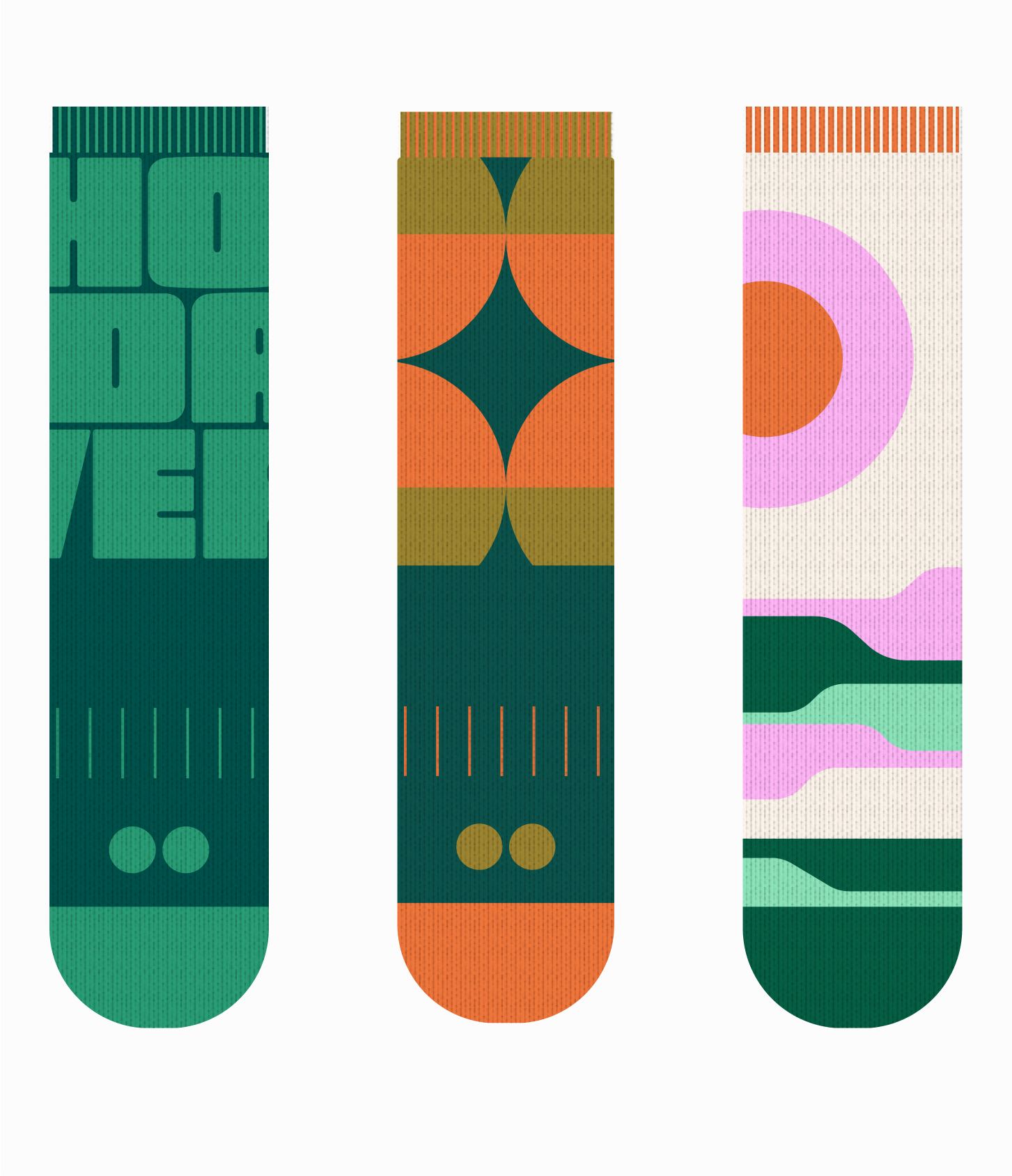 One thing we learned in this process as digital designers is: we need to respect the limitations of print. There's so much we wanted to do and cram into this tiny space that print did not allow to happen. We also wanted to really emphasize the geometric element but it does not always translate in a 3D environment of a sock. It was humbling but also an added challenge to how we approach the design. At the same time, it was also important that it appealed to the mass in its simplicity without singling out people who appreciated more funk in their style - which a lot of these concepts did not serve. But we love them all the same.
