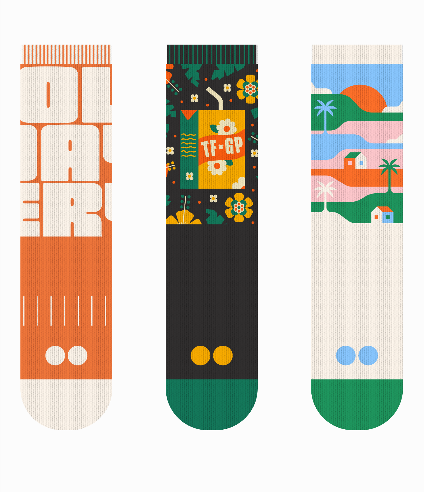 It might be strange to see a design studio creating our own merch but it was something we really wanted to explore. The goal for Tofu Design in 2023 was to expand our creative mediums and what better way to express that than socks. Socks have been one of our favourite mediums to work with due to its small nature and everyone loves a fancy sock, right?