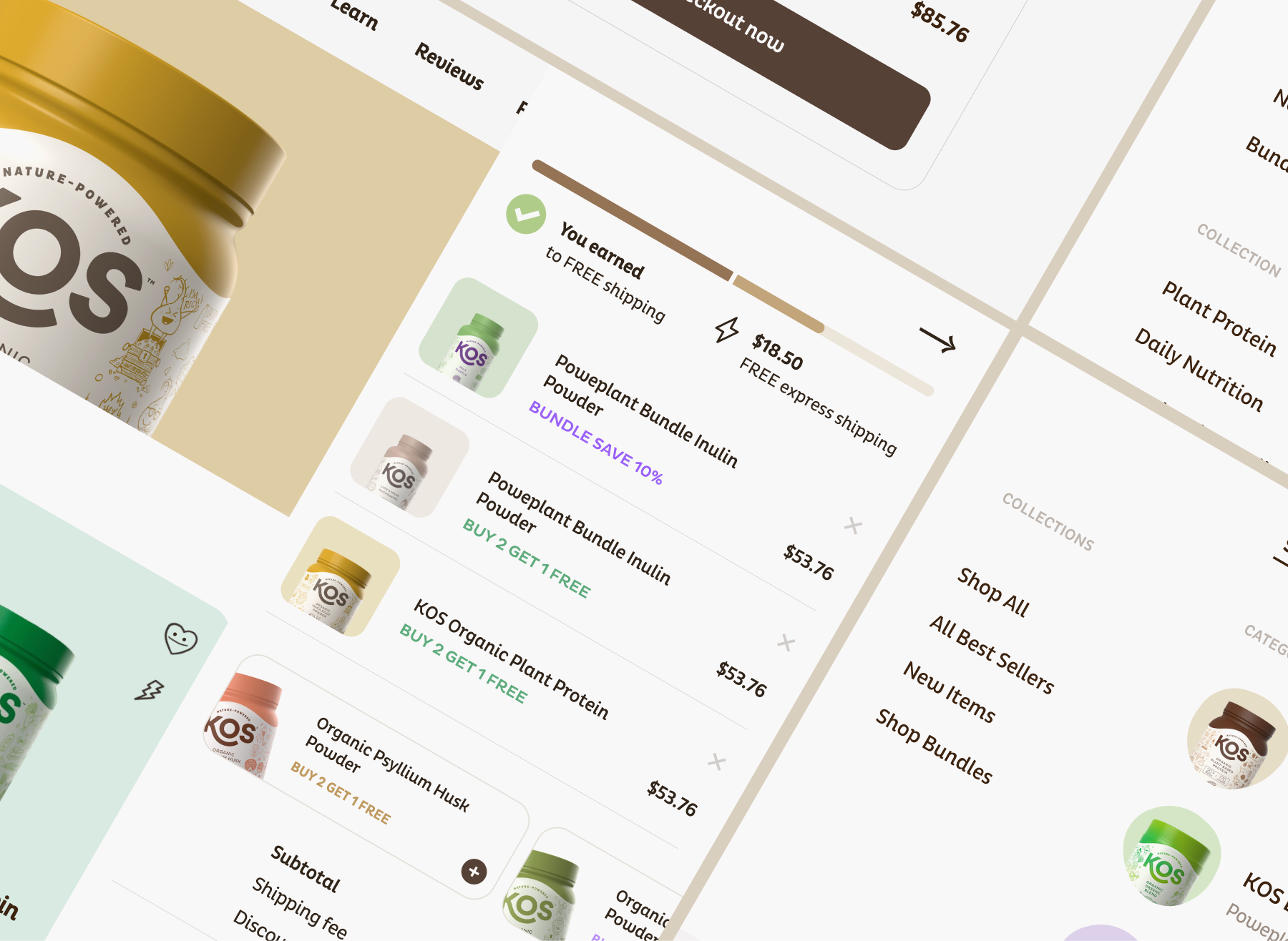 As the brand grew, it outgrew the website as well. In 2021, together with KOS’ CRO Manager, Nolan Heyer, we began restructuring a completely new design system to adapt to KOS’ rapid growth with both user experience and conversion in mind - all while maintaining KOS' distinct personality.